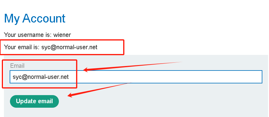 - 1.在 Burp 的浏览器中,使用凭据登录应用程序并更新您的电子邮件地址。wiener:peter