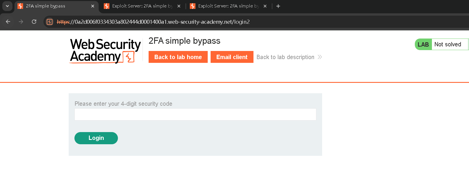 如果系统首先提示用户输入密码,然后提示用户在单独的页面上输入验证码,则用户在输入验证码之前实际上处于“登录”状态。在这种情况下,值得测试一下,看看你是否可以在完成第一个身份验证步骤后直接跳到“仅限登录”的页面。有时,您会发现网站实际上并没有检查您在加载页面之前是否完成了第二步。