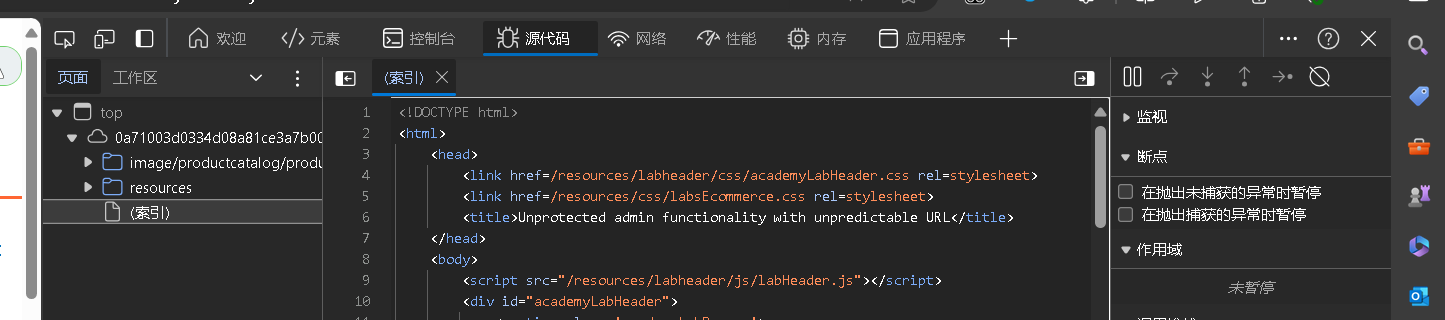 - 使用 Burp Suite 或 Web 浏览器的开发人员工具查看实验室主页的源代码。