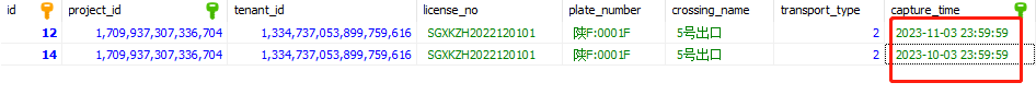 为啥可以显示出2023-11-03日的值,显示不出来2023-10-03日的值,两个日期的值都是当天的最大时间,即"2023-10-03 23:59:59"和“2023-11-03 23:59:59”
