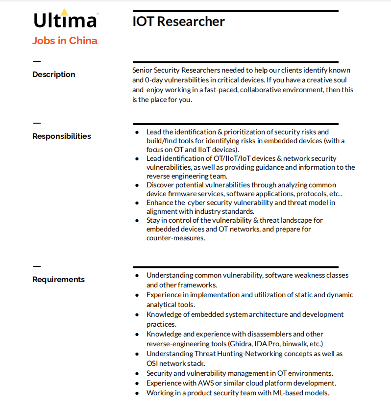 IoT Researcher Malware Analysis Penetration Testing in Mobile Applications Penetration Testing Web Application Research Automation Developer work from home (最好base深圳)